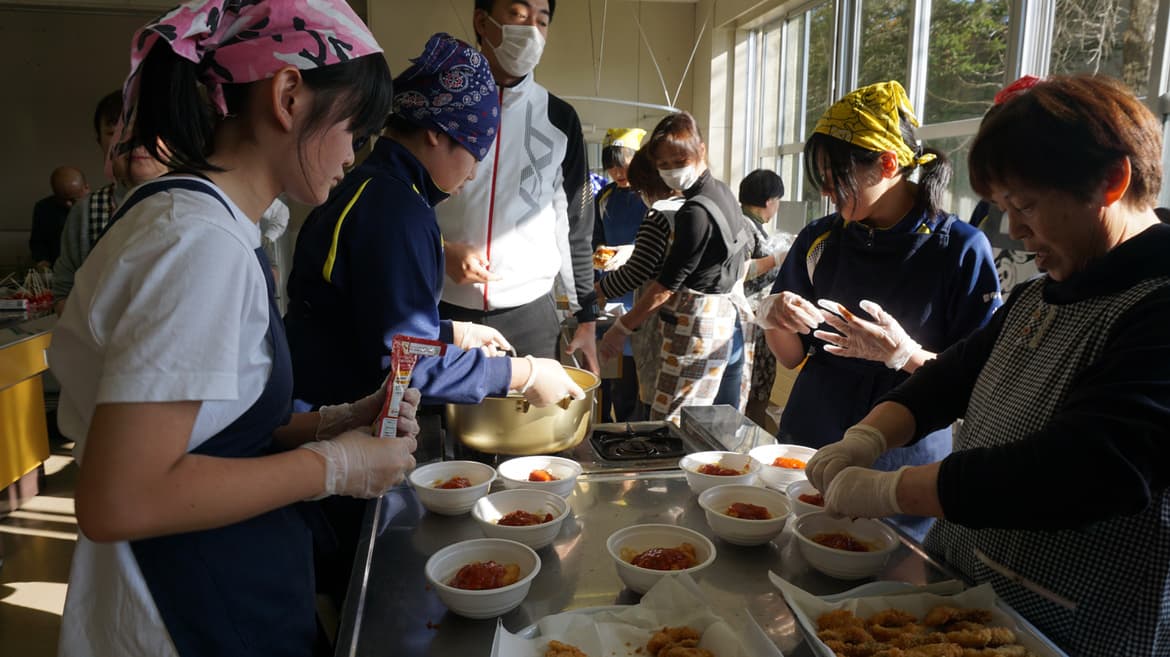 漁協女性部は、魚食活動のため、散布中学校で、「浜の母さん料理教室」を実施しております。